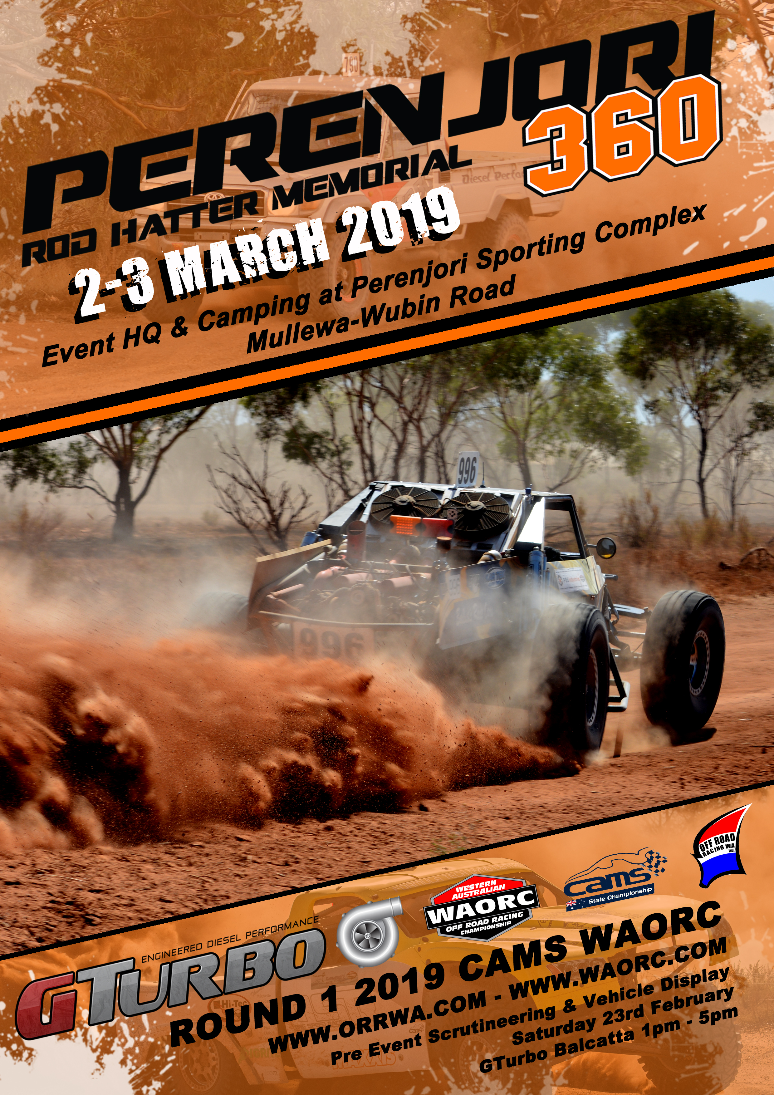 Entries for the first round of the 2019 CAMS, Western Australian Off Road Racing Championship are now open. The Rod Hatter Memorial, GTurbo Perenjori 360 is set to kick off the season in spectacular fashion.